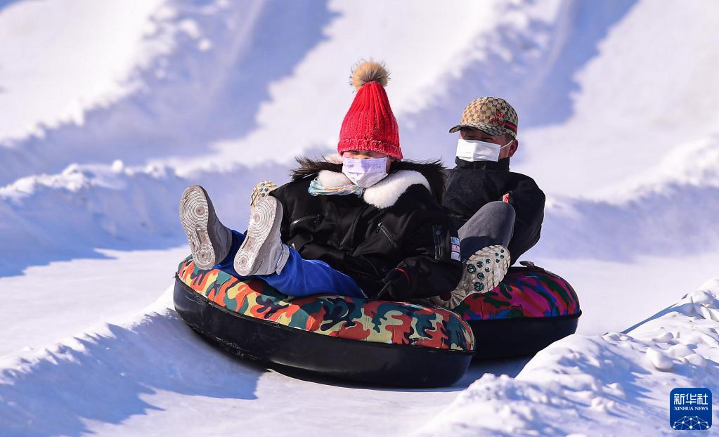 1月23日,市民在沈陽(yáng)北陵公園冰雪大世界游玩。