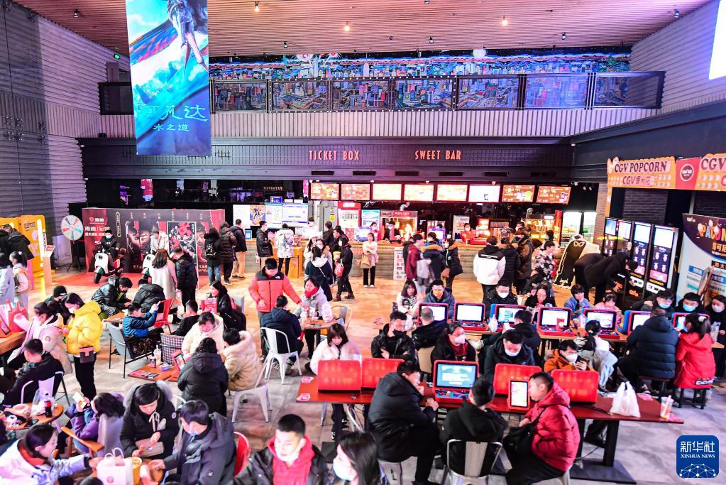 1月24日,市民在沈陽(yáng)一電影院等待入場(chǎng)。