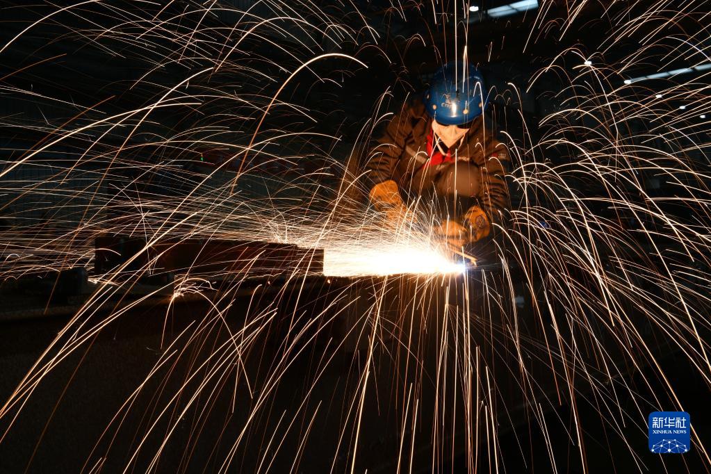 1月28日,在位于河北省石家莊市欒城區的中車(chē)齊車(chē)集團石家莊公司,車(chē)間員工進(jìn)行焊接操作。