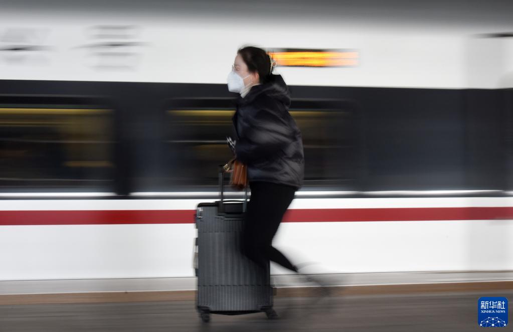 1月27日,一名旅客在安徽阜陽(yáng)西站準備乘車(chē)。