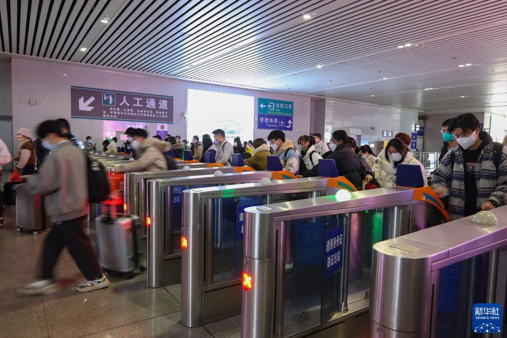 1月28日,旅客在南昌火車(chē)站檢票進(jìn)站。