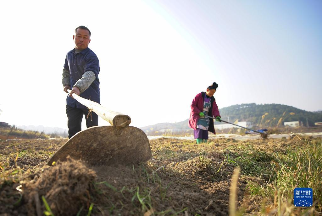 1月29日,貴州省黔東南苗族侗族自治州丹寨縣興仁鎮臺辰村村民在整理土地。