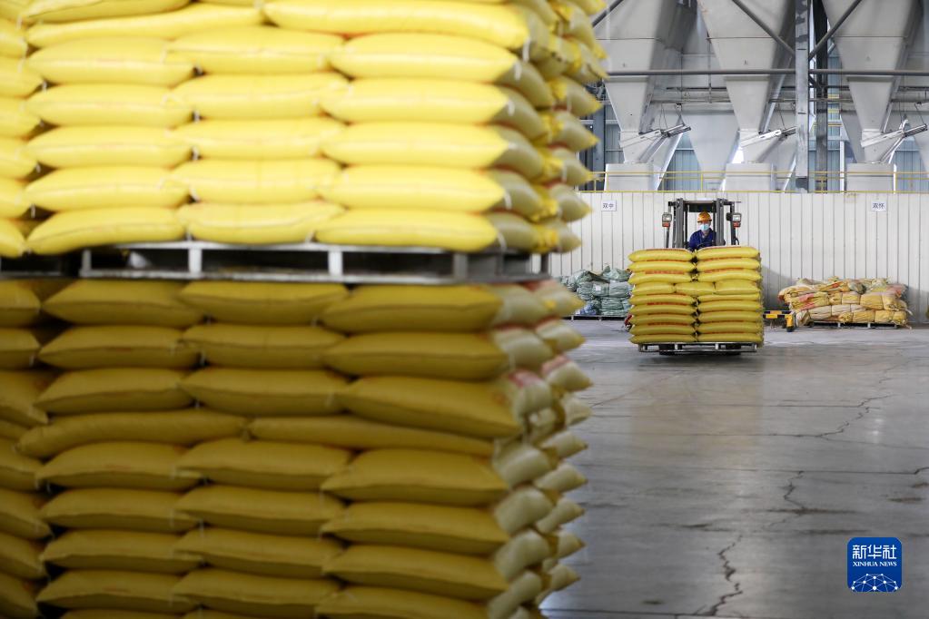 1月29日,在位于湖南資興經(jīng)濟開(kāi)發(fā)區的郴州雙胞胎飼料有限公司,工人在生產(chǎn)車(chē)間駕駛叉車(chē)運輸飼料。