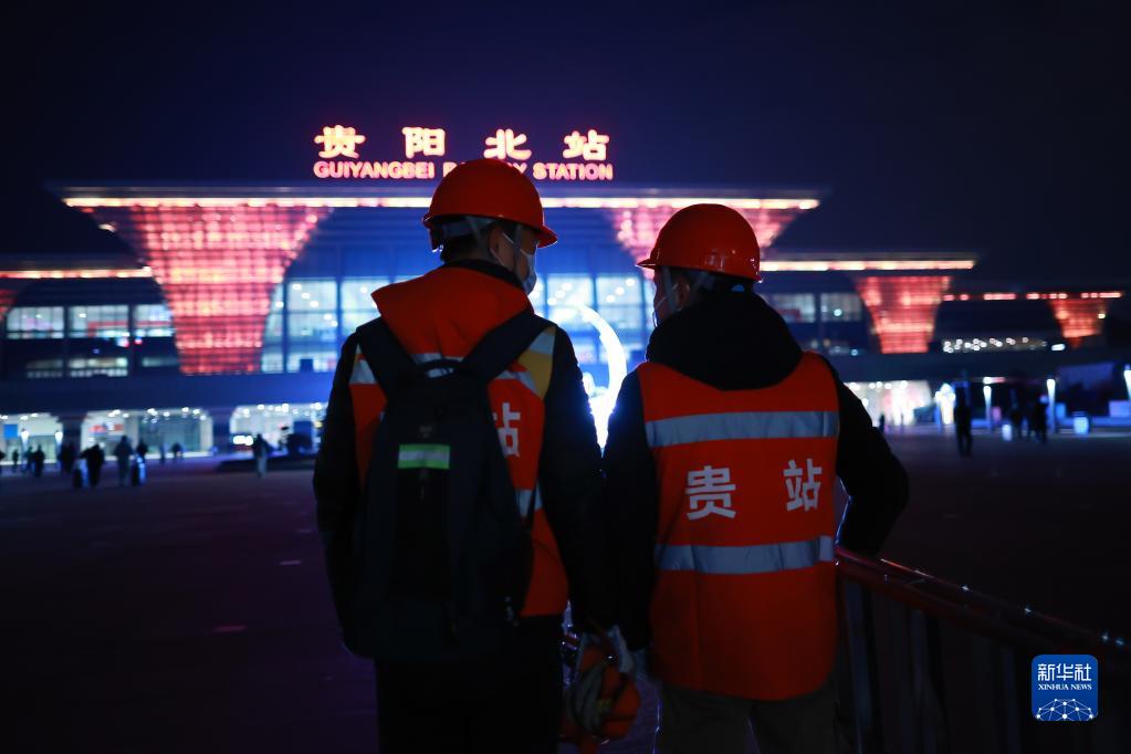1月29日,設備檢修人員走在貴陽(yáng)北站西廣場(chǎng)。