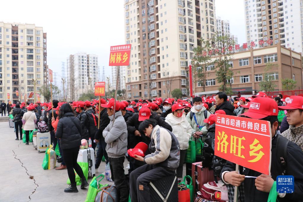 云南省彝良縣組織務(wù)工人員乘坐“務(wù)工專(zhuān)車(chē)”返崗復工(1月27日攝)。