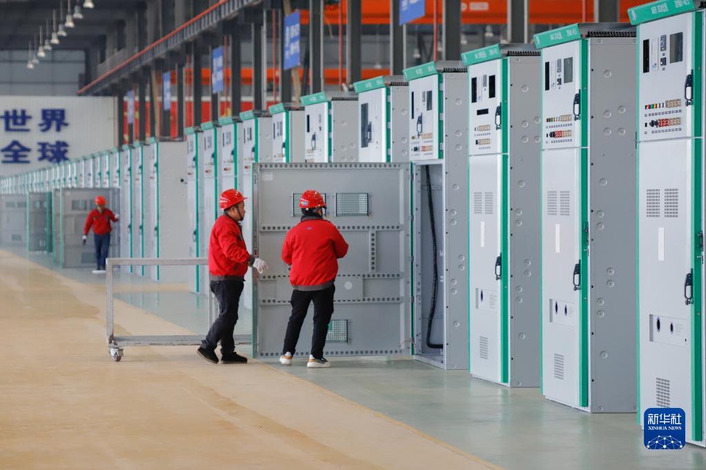 1月29日,工人在貴州省黔南布依族苗族自治州獨山縣經(jīng)濟開(kāi)發(fā)區一家電力裝備制造廠(chǎng)內進(jìn)行配電柜組裝。