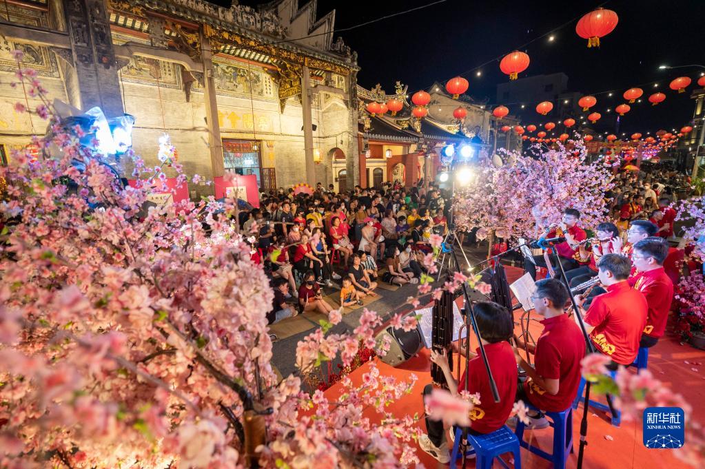 1月28日,人們在馬來(lái)西亞檳城州首府喬治市舉行的檳城廟會(huì )上觀(guān)看表演。