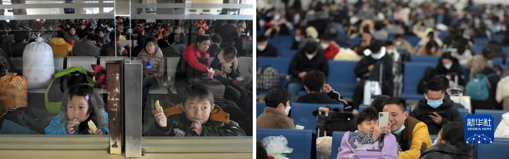 拼版照片:左圖為2012年2月3日,旅客在阜陽(yáng)火車(chē)站候車(chē)室候車(chē);右圖為2023年1月27日,旅客在阜陽(yáng)西站候車(chē)室候車(chē)。