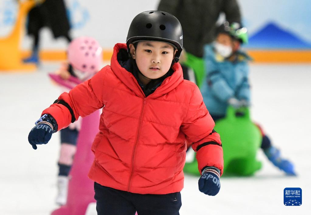 一名小朋友在“冰立方”冰上運動(dòng)中心滑冰(1月23日攝)。