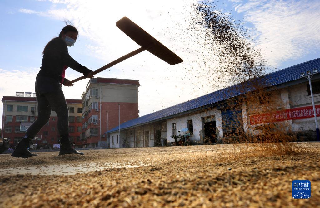 1月30日,江西省宜春市靖安縣雷公尖鄉虎山村種糧大戶(hù)李春花在晾曬早稻良種。