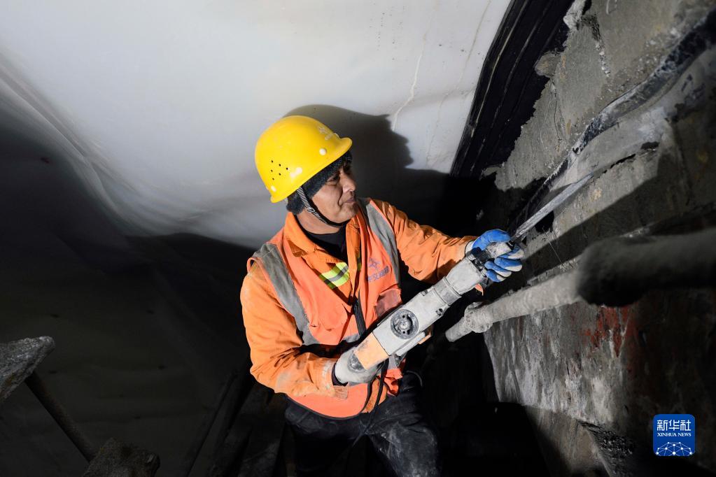 1月30日,在首都地區環(huán)線(xiàn)高速公路承德至平谷段楊家窩鋪特長(cháng)隧道施工現場(chǎng),工人在進(jìn)行二次襯砌。