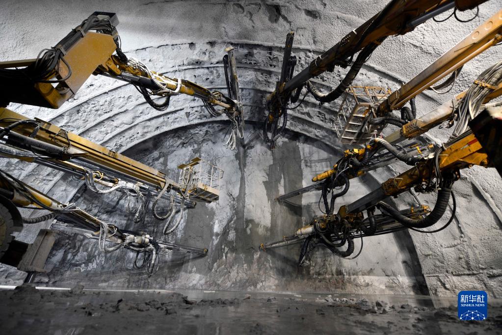 1月30日,在首都地區環(huán)線(xiàn)高速公路承德至平谷段楊家窩鋪特長(cháng)隧道施工現場(chǎng),工人操作機械進(jìn)行鉆孔作業(yè)。