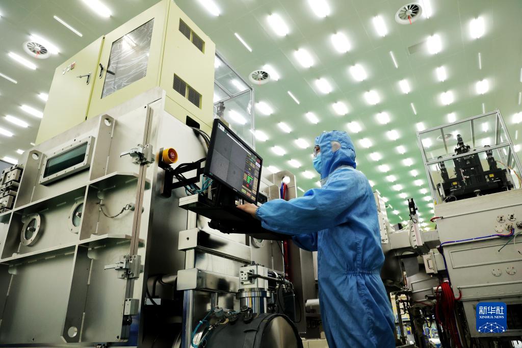 1月30日,在安徽合肥新站高新區一家智能制造企業(yè)研發(fā)中心,技術(shù)人員在調試蒸鍍設備。