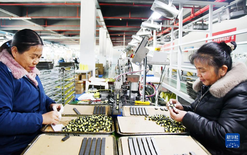 1月30日,在湖南省永州市江永產(chǎn)業(yè)開(kāi)發(fā)區一家電子企業(yè),工人在生產(chǎn)車(chē)間忙碌。