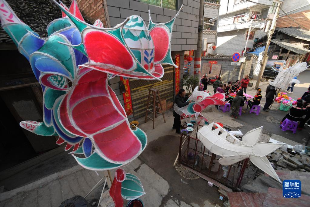 從正月初六開(kāi)始,貴州省黔東南苗族侗族自治州臺江縣的民間藝人紛紛用紙、竹木條等材料趕制各式各樣的花燈和龍燈,迎接元宵節的到來(lái)。