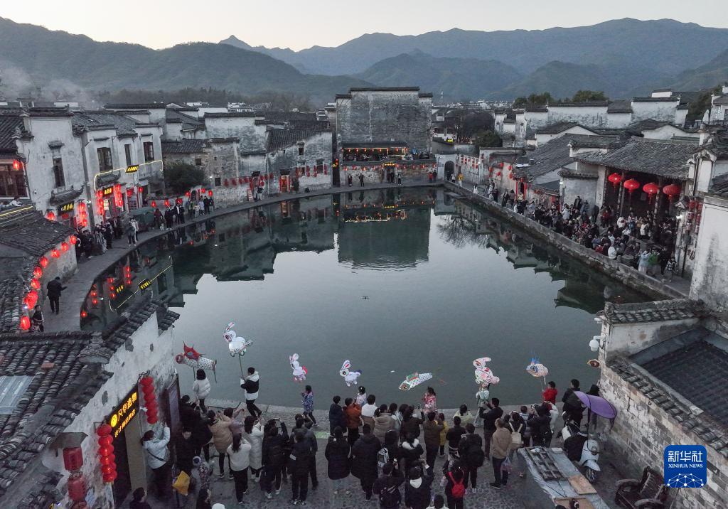 兔年新春,在安徽省黃山市黟縣宏村,當地舉行的花燈研習班邀請游客共同制作兔子形狀花燈。傍晚時(shí)分,五顏六色的“兔燈”在古村中點(diǎn)亮,游客在“鬧花燈”中體驗徽州年俗。