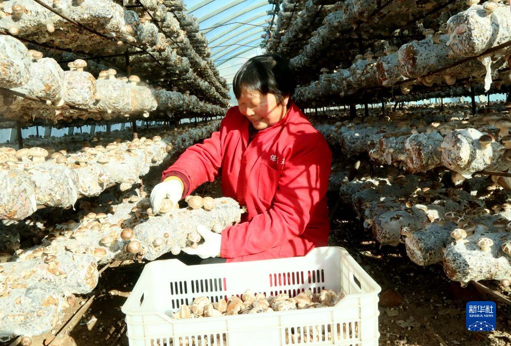 1月30日,在河南省洛陽(yáng)市汝陽(yáng)縣十八盤(pán)鄉蒿坪村,一家種植專(zhuān)業(yè)合作社的菇農在采摘香菇。