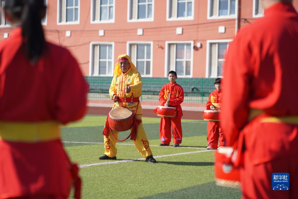 寒假期間,河北省邢臺市內丘縣官莊中心小學(xué)開(kāi)設文化課堂,邀請當地排鼓藝人向學(xué)生教授排鼓知識,讓學(xué)生感受家鄉文化的魅力,豐富假期生活。