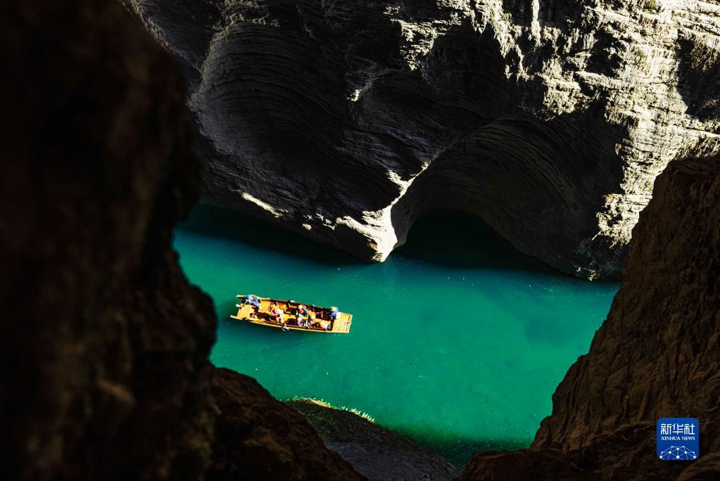 1月28日,游人在鶴峰縣屏山旅游景區乘船游玩。