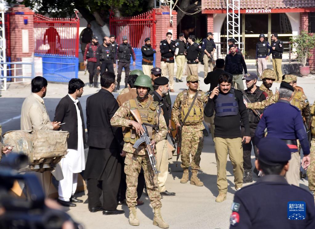 1月30日,在巴基斯坦西北部開(kāi)伯爾-普什圖省首府白沙瓦市,安全人員在爆炸襲擊事件現場(chǎng)警戒。