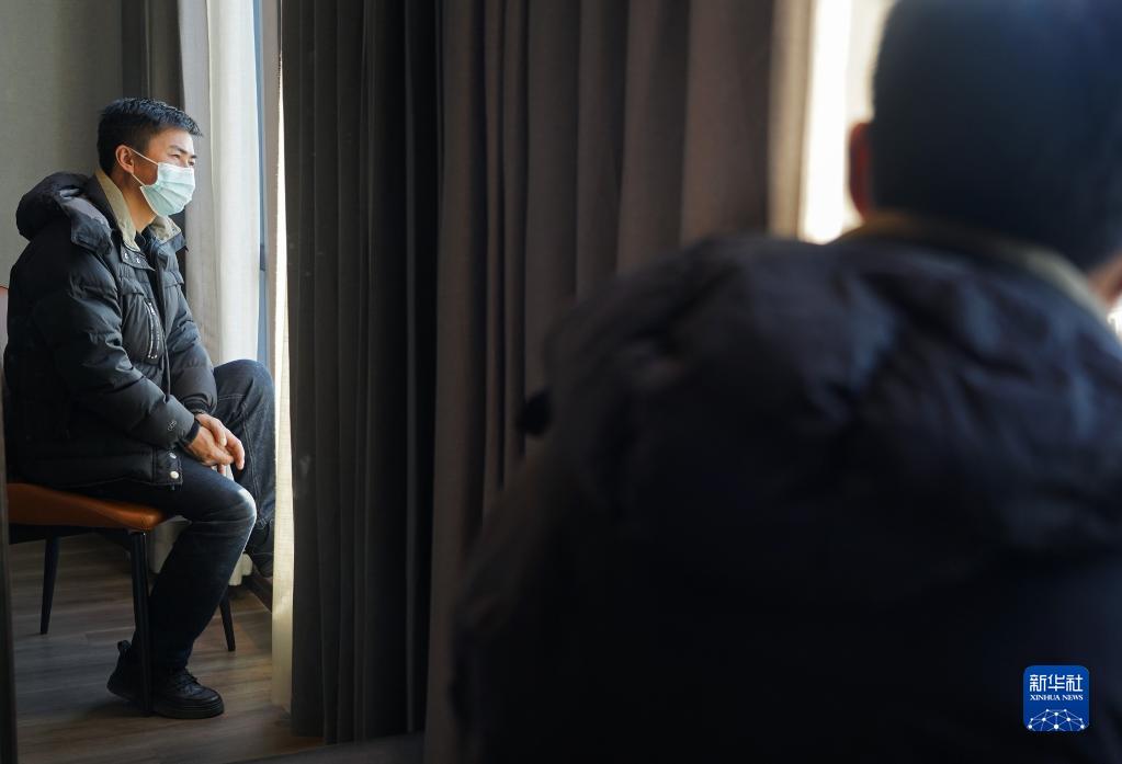 在靖安縣一家酒店,錢(qián)芳勇望向窗外,即將見(jiàn)到親生父母,心情有些復雜(1月30日攝)。