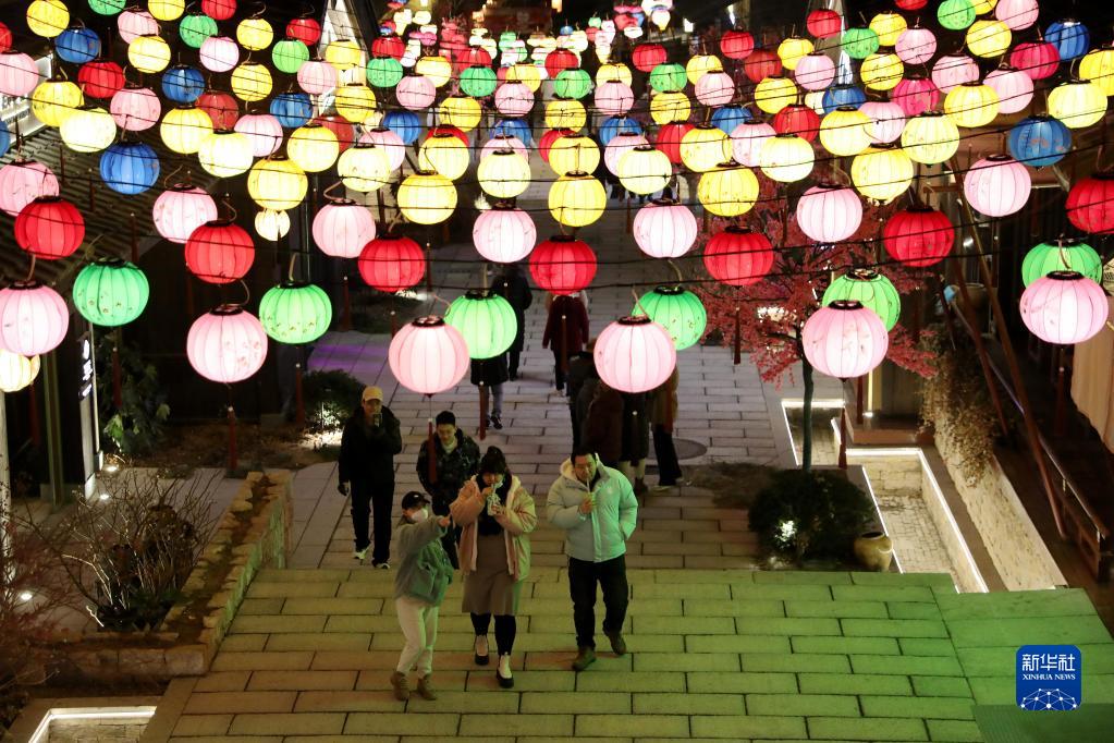 1月30日,游客在山東省青島西海岸新區阿朵花嶼景區觀(guān)賞花燈。