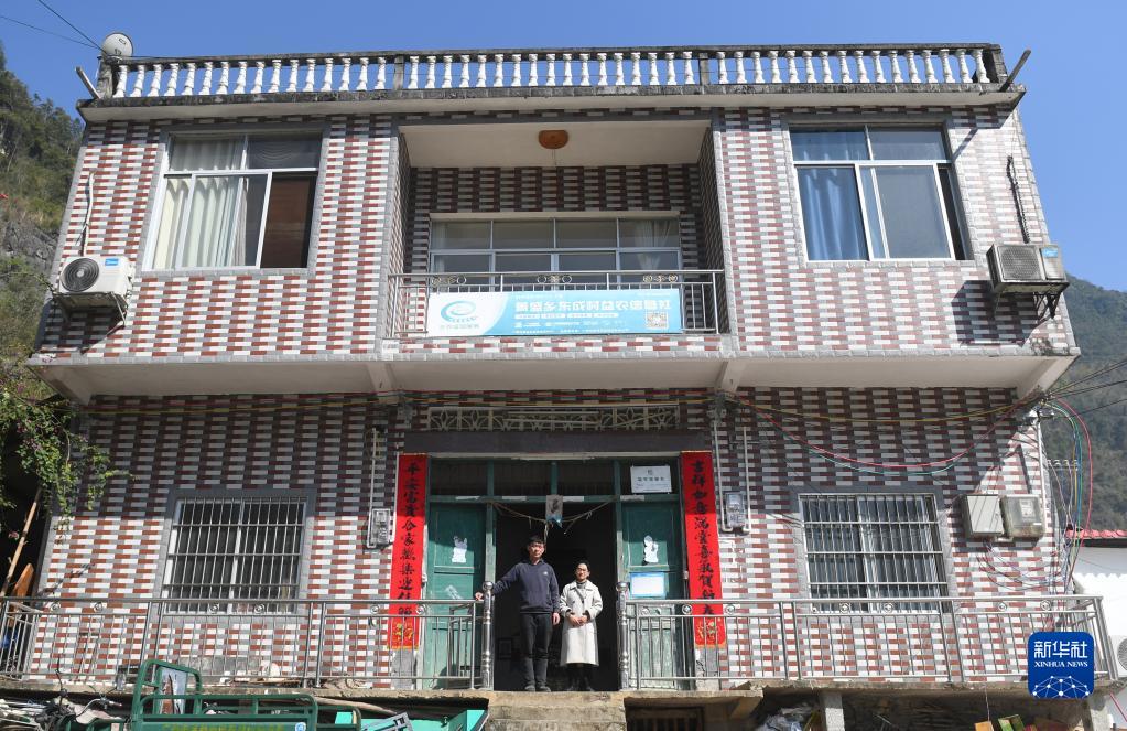 在菁盛鄉東成村過(guò)達屯,黃啟林和妻子周艷妮站在家門(mén)口(1月30日攝)。