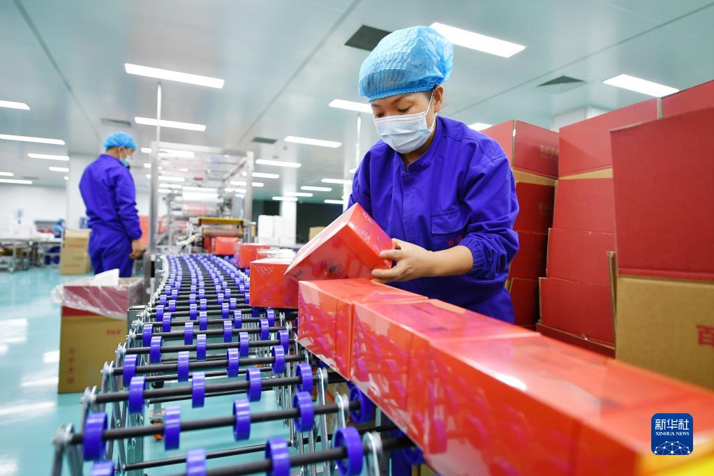 1月31日,在寧夏銀川市賀蘭縣一家枸杞深加工企業(yè),工作人員在生產(chǎn)線(xiàn)上包裝枸杞深加工產(chǎn)品。
