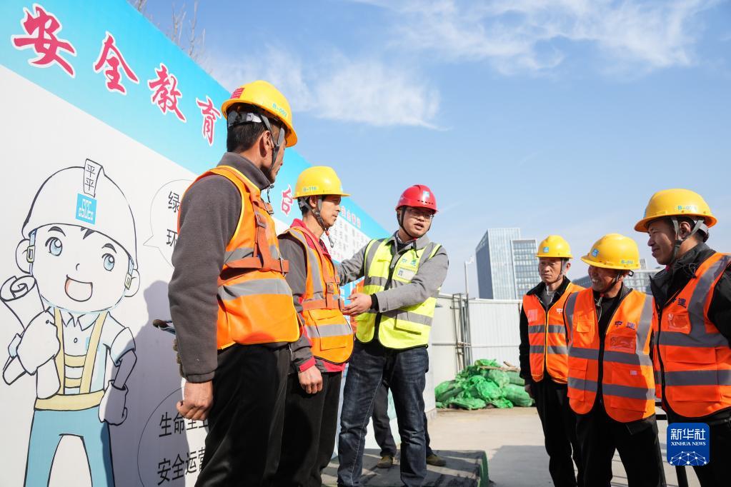 1月31日,在濟南浪潮智能計算產(chǎn)業(yè)園建設現場(chǎng),中建三局技術(shù)人員召集施工班組上好“安全生產(chǎn)復工第一課”。