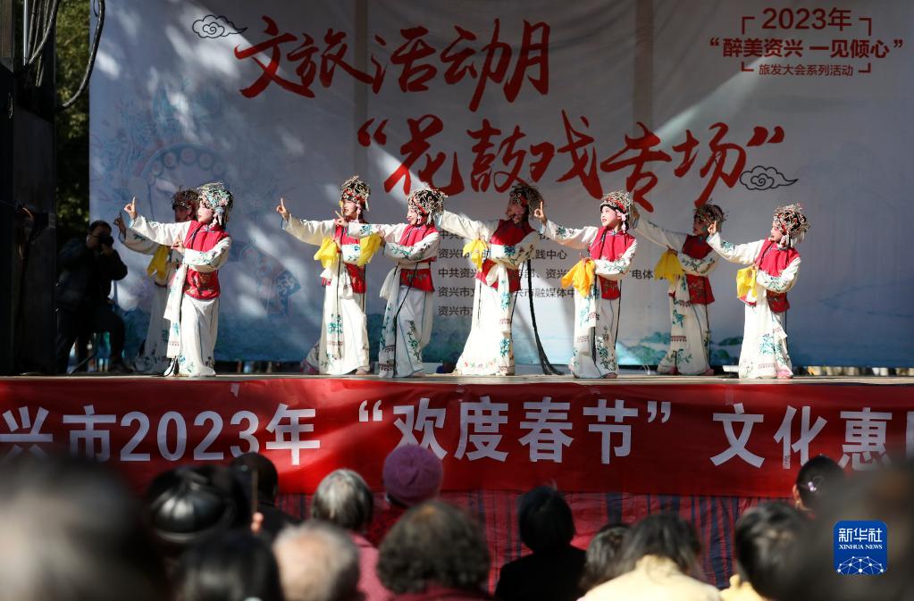 當日,湖南省資興市舉行春節花鼓戲專(zhuān)場(chǎng)演出,讓市民在家門(mén)口就能感受傳統戲曲文化的魅力,在看戲賞戲的歡樂(lè )氛圍中過(guò)大年。