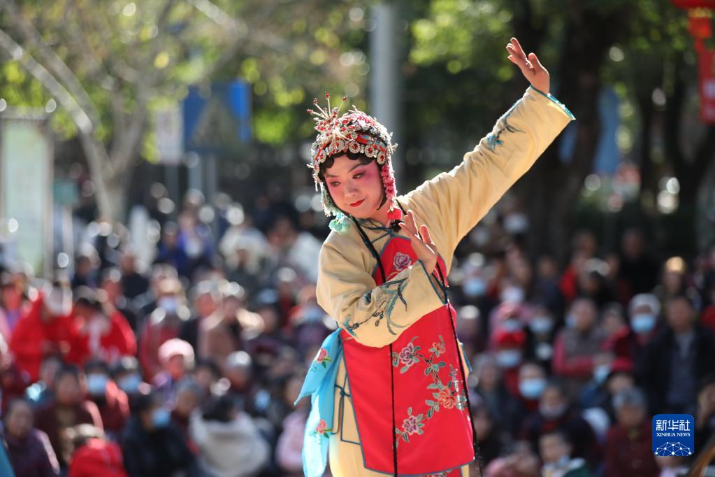 當日,湖南省資興市舉行春節花鼓戲專(zhuān)場(chǎng)演出,讓市民在家門(mén)口就能感受傳統戲曲文化的魅力,在看戲賞戲的歡樂(lè )氛圍中過(guò)大年。