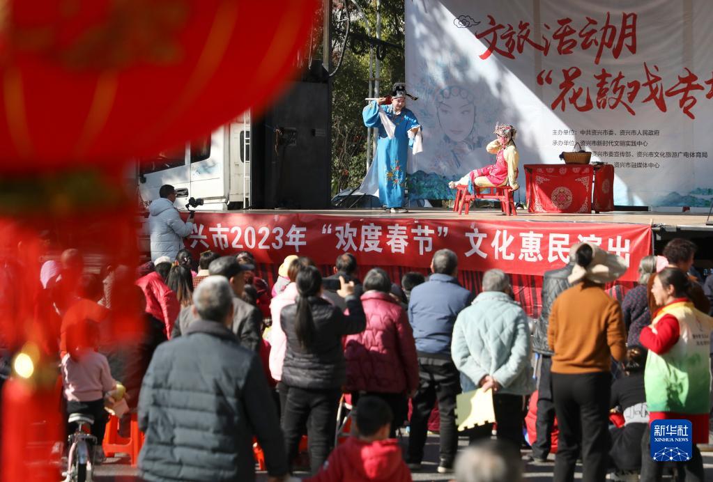 當日,湖南省資興市舉行春節花鼓戲專(zhuān)場(chǎng)演出,讓市民在家門(mén)口就能感受傳統戲曲文化的魅力,在看戲賞戲的歡樂(lè )氛圍中過(guò)大年。