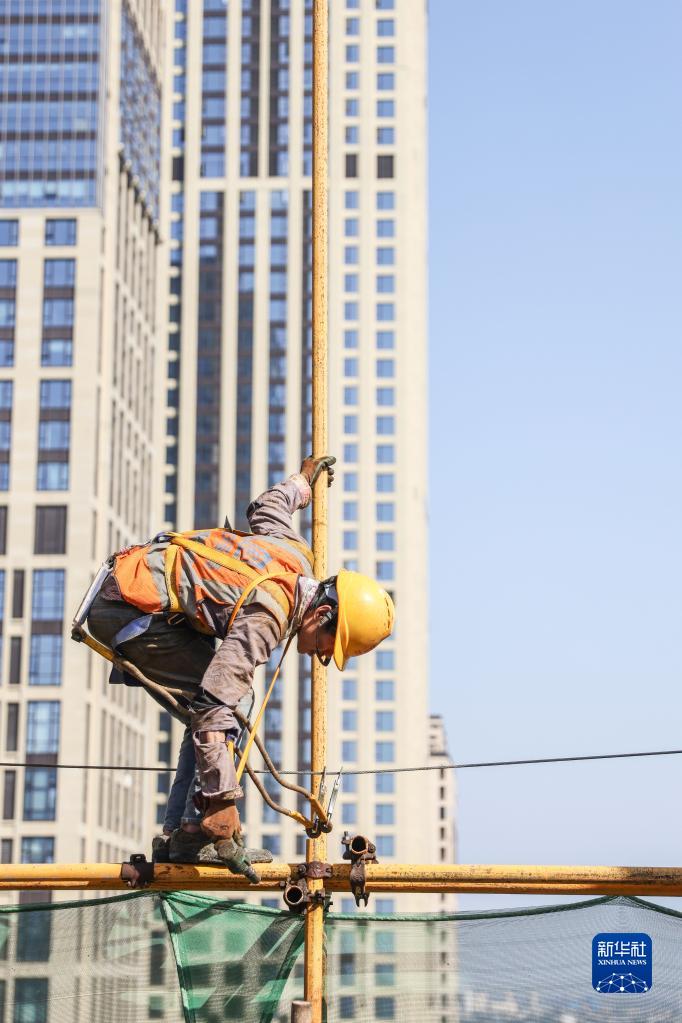 1月30日,中建三局的工人在??谑械暮D现行捻椖抗さ厣鲜┕?。