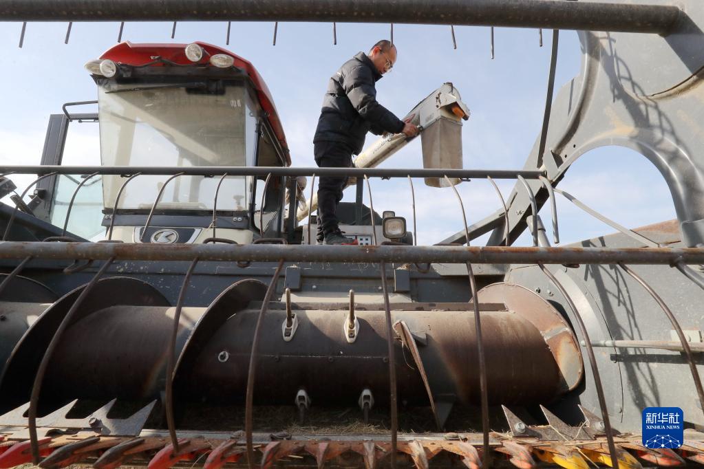 1月31日,浙江省湖州市德清縣新安鎮下舍省級糧食生產(chǎn)功能示范區的技術(shù)員在檢修農機。