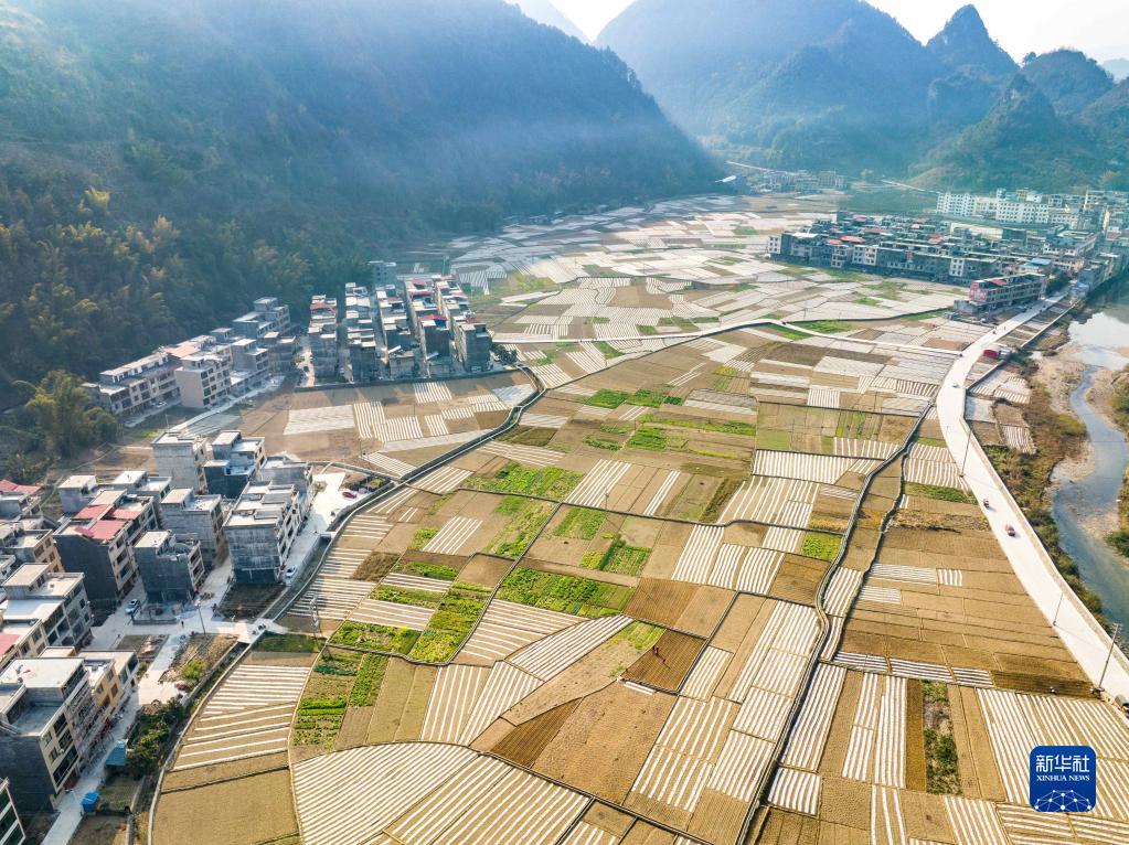 1月31日在廣西河池市鳳山縣砦牙鄉砦牙村拍攝的農田(無(wú)人機照片)。