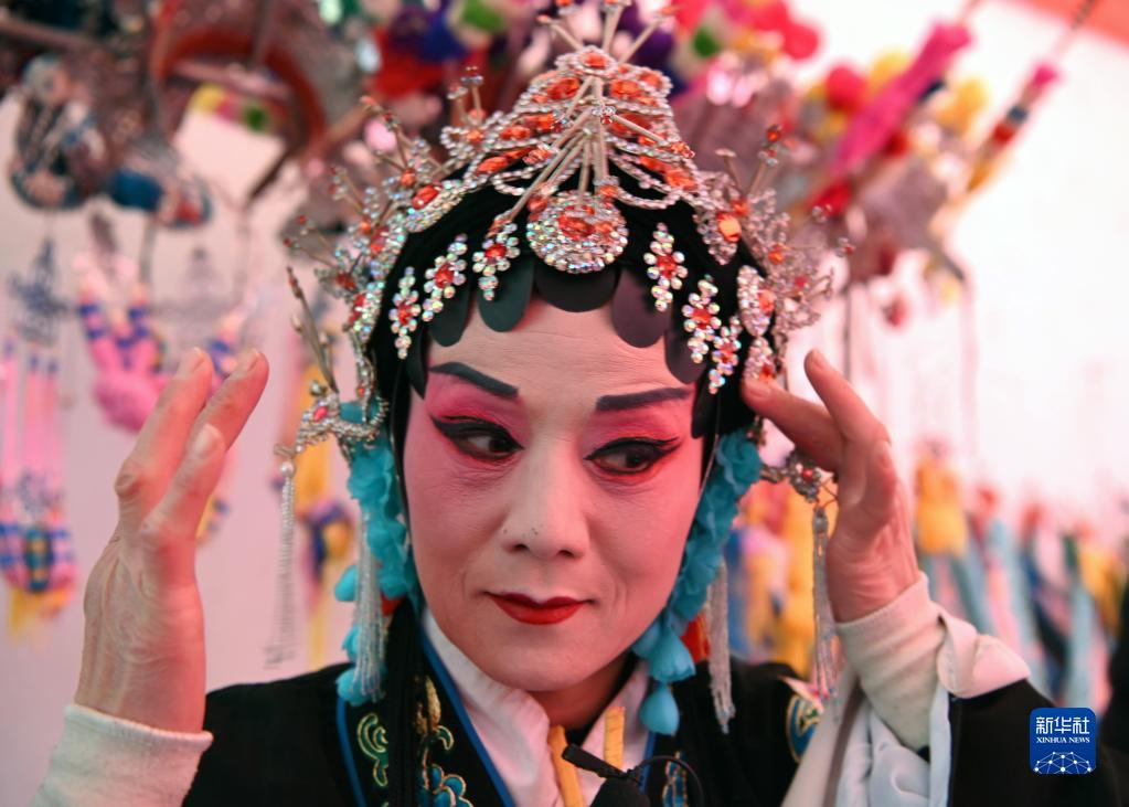 1月31日,沁陽(yáng)市丁莊村群英豫劇社演員在化裝。