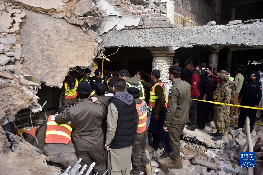 1月31日,在巴基斯坦白沙瓦,救援人員和安全人員參與搜救行動(dòng)。