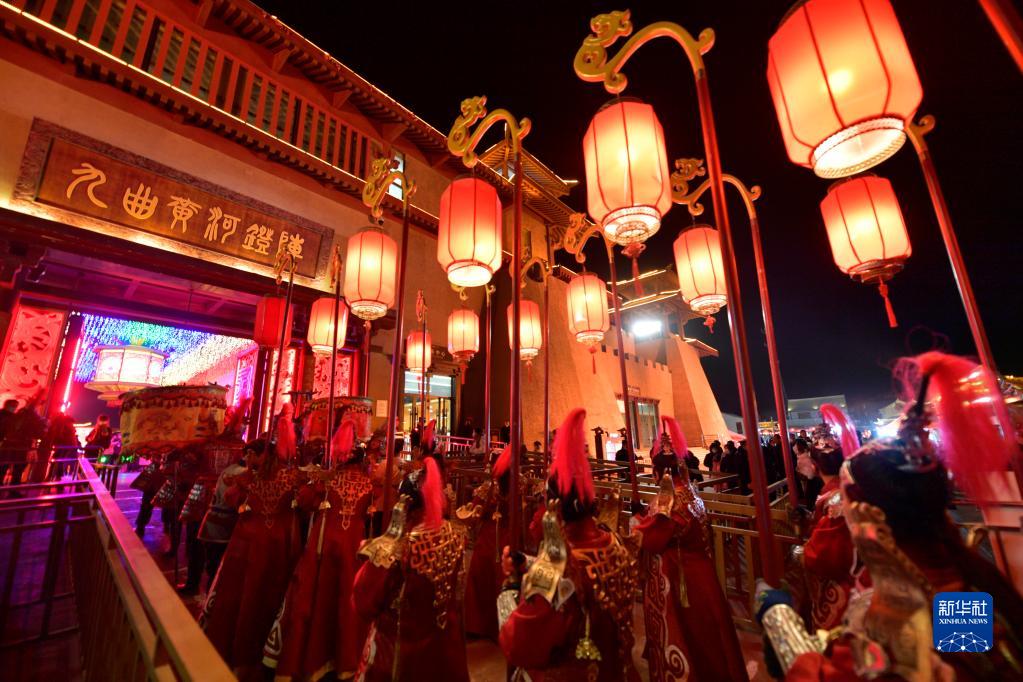這是1月31日拍攝的九曲黃河燈陣啟燈儀式。