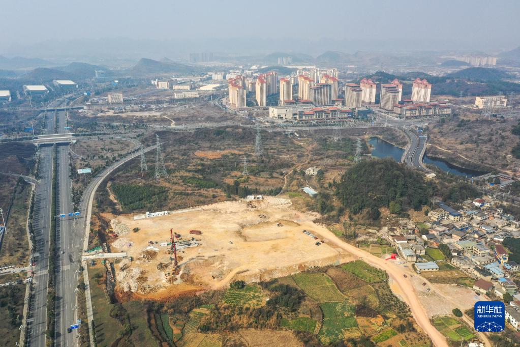 這是2月1日拍攝的貴安美的云一期土建總承包工程項目施工現場(chǎng)(無(wú)人機照片)。