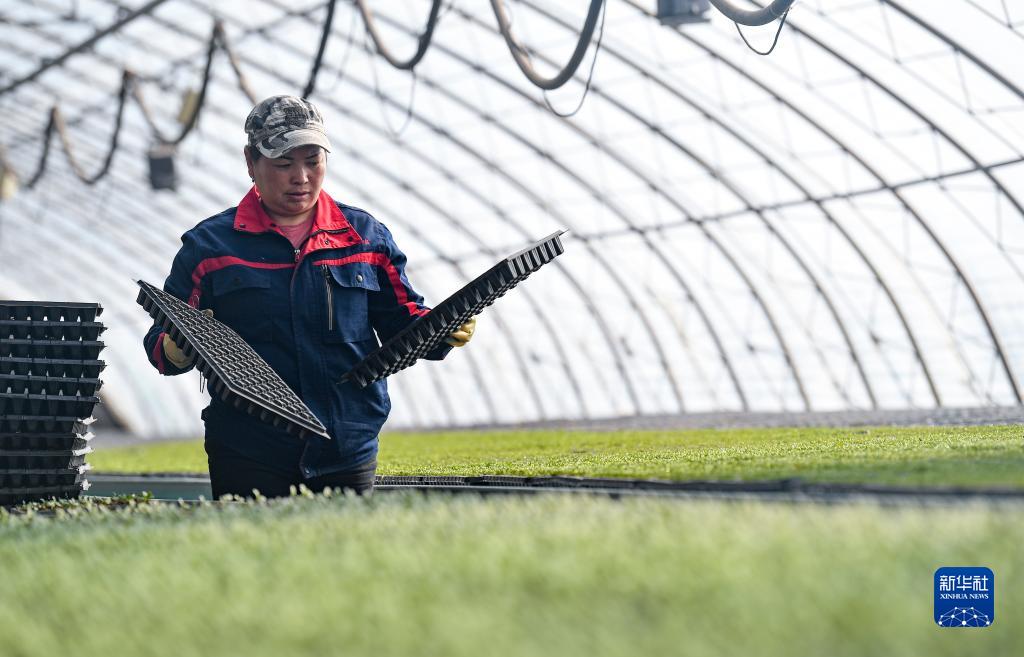 臨近立春,寧夏銀川市賀蘭縣各主要種苗繁育基地的大棚內滿(mǎn)眼綠意,工人們忙著(zhù)為即將到來(lái)的春耕培育幼苗。