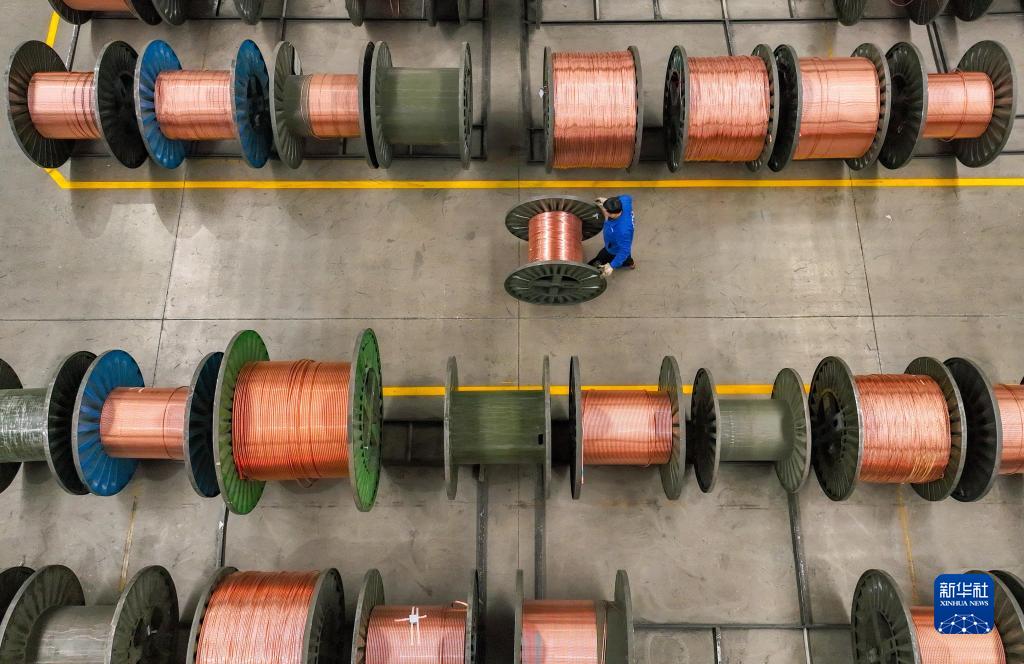 2月1日,在四川遂寧市蓬溪經(jīng)開(kāi)區一電纜生產(chǎn)車(chē)間,工人在趕制訂單(無(wú)人機照片)。
