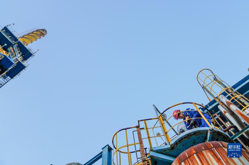 李艷在廠(chǎng)區內的裝置上巡檢(2022年11月8日攝)。
