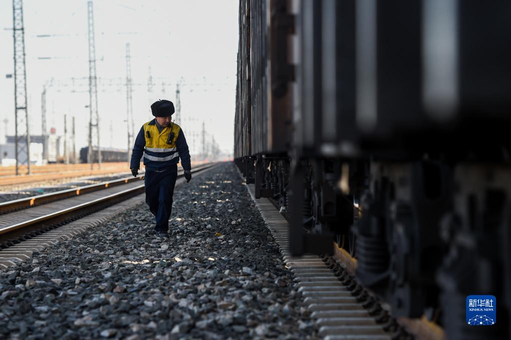 2月1日,呼和浩特南站的工作人員在檢查運煤列車(chē)狀況。