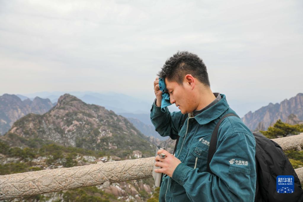 作為安徽黃山風(fēng)景區內唯一的郵政步班投遞員,“90后”小伙謝菲俊每天要背負幾十斤的郵包在平均海拔1300多米的“云端”徒步12公里,上下臺階約12000級,將各種郵件送達33個(gè)投遞點(diǎn)。由于山高路遠,又是安徽省海拔最高的投遞段道,謝菲俊被大家親切地稱(chēng)為“云端信使”。