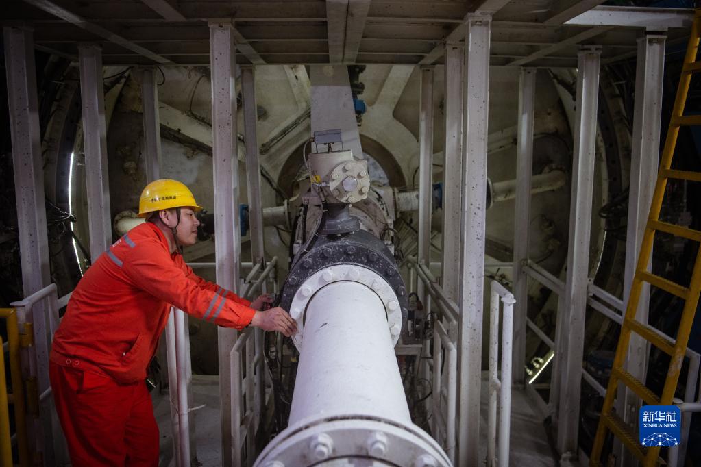 2月1日,中鐵十四局工人在檢查泥漿管道。