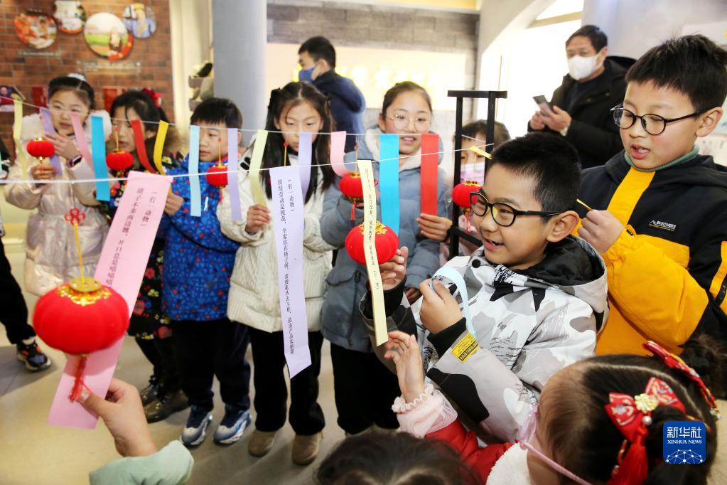 2月2日,孩子們在江蘇省連云港市連云區墟溝街道大巷社區猜謎語(yǔ)。