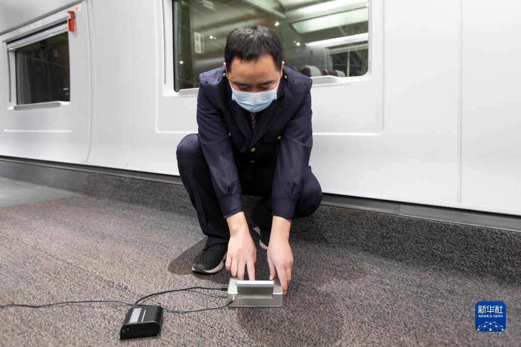 2月1日凌晨5時(shí)許,上海高鐵基礎設施段添乘班班長(cháng)陳曉華在DJ7716次高鐵確認列車(chē)上布設便攜式添乘儀,了解列車(chē)平穩運行程度。