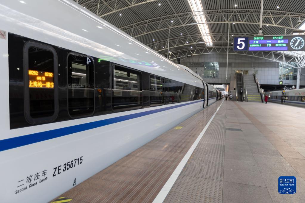2月1日早晨7時(shí)許,DJ7715次高鐵確認列車(chē)在變更為G8262次列車(chē)后??吭谏虾U?,即將搭載旅客前往睢寧站。