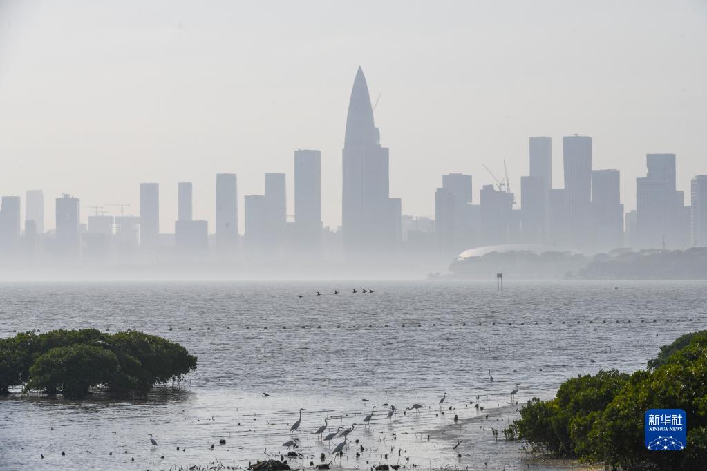 在深圳,紅樹(shù)林濕地與城市的高樓大廈形成人與自然和諧相處的景象(2月1日攝)。