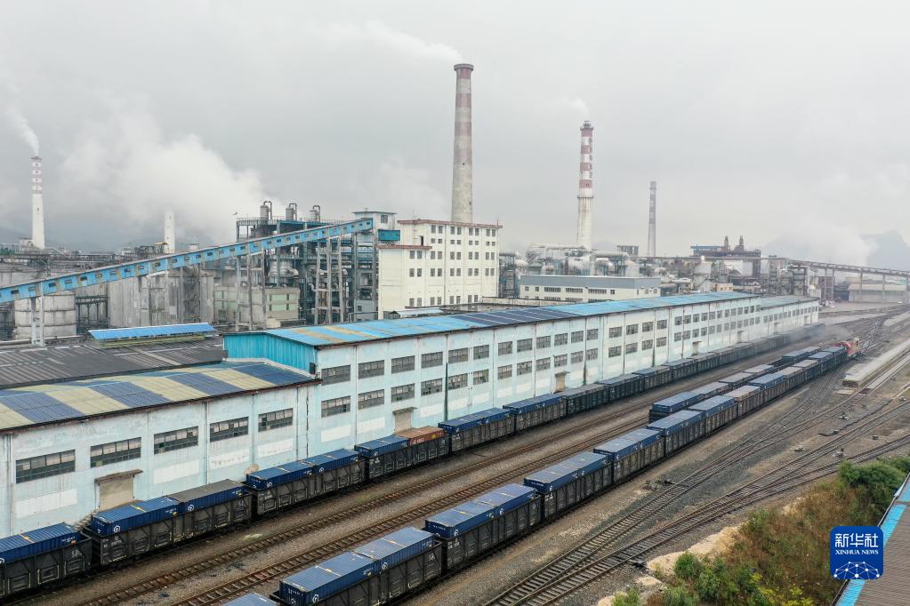 這是2月2日拍攝的裝載化肥的貨運列車(chē)與福泉市甕?;す荆o(wú)人機照片)。